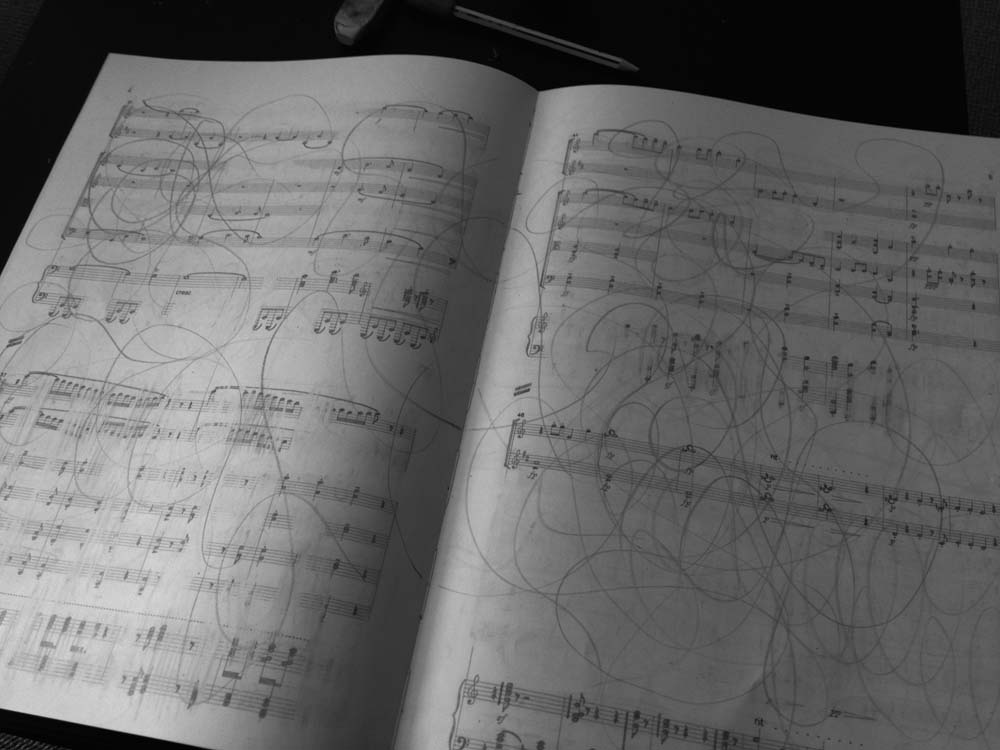 Erased Symphony is based on the idea that existing cultural narratives are subject to erasure, whereby the focus is not only on evident extinction but also processes of disappearance, revaluation, densification, corrosion, etc. in the telling of national, continental, in this case Western, and hegemonial (hi)stories. In Erased Symphony the Emperor Waltz by Strauss undergoes a gradual process of erasure, albeit not the original version is modified but Arnold Schönberg’s transcription of the waltz from 1925 for flute, clarinet, string quartet, and piano. Amorales printed a version of this score with a specially prepared plotter: He exchanged the cutter needle of the printer with a pencil so it could be erased afterwards. The project takes place in collaboration with Klangforum Wien.