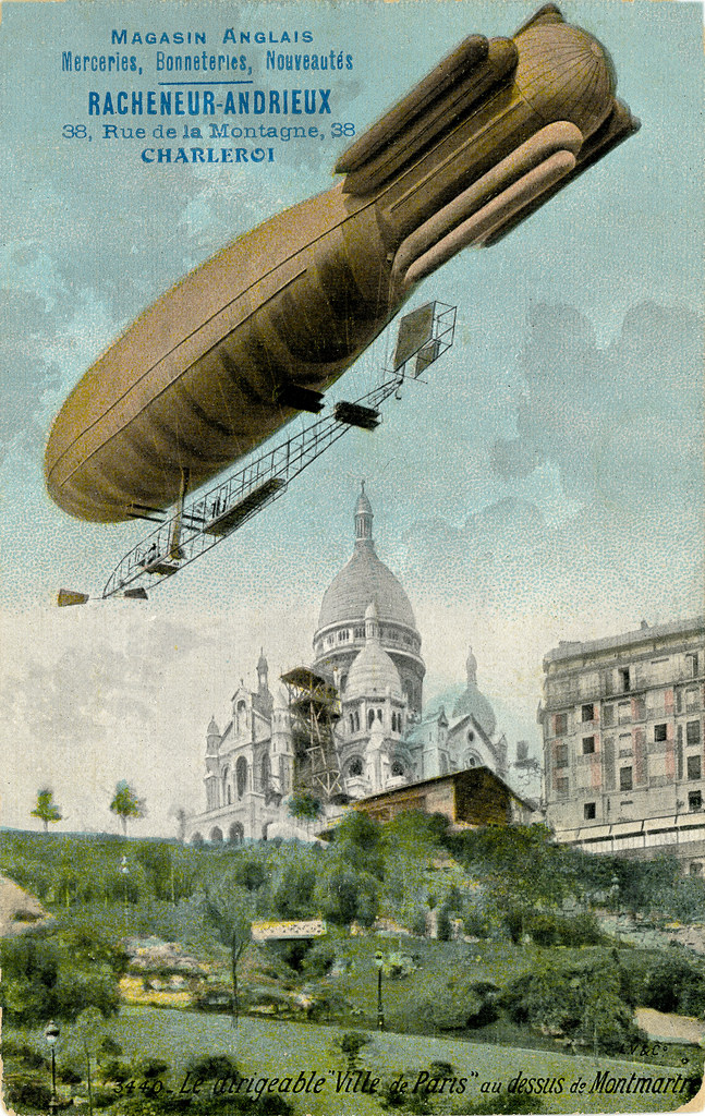 Impression of the Surcouf built dirigible ‘Ville de Paris’ above Montmartre [France, 1906-1908] by Varese2002 (via http://flic.kr/p/pjXUnx )