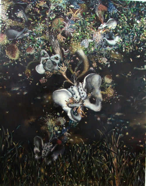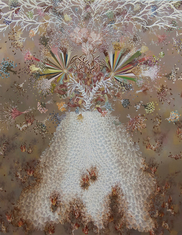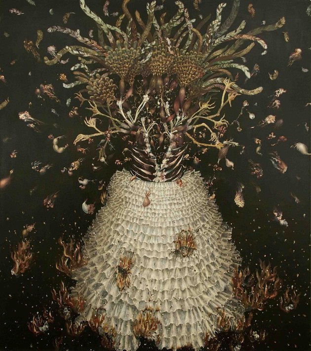 Since the 2011 earthquake and resulting nuclear disaster in Japan, Haruko Maeda has become hyper-aware of death and how it permeates various aspects of life on Earth. “From the moment of our birth, we move inexorably towards death, day after day. After life, death comes for each and every one of us without exception,” she reflected on her blog. Now based in Austria, the artist creates delicate oil paintings and sculptures that examine the cycle of life. Inspired by the Baroque architecture that surrounds her in her adoptive home as well as Japanese horror manga and Renaissance portraiture, Maeda treads towards the unknown, depicting death optimistically without gore or viscera.