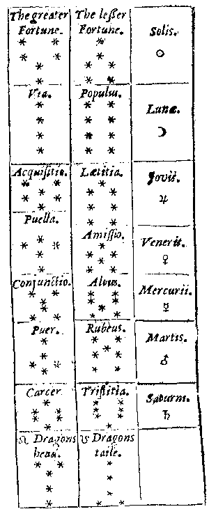 The Geomantic Figures. Henry Cornelius Agrippa, His Fourth BOOK of Occult Philosophy. Of GEOMANCY (1665)