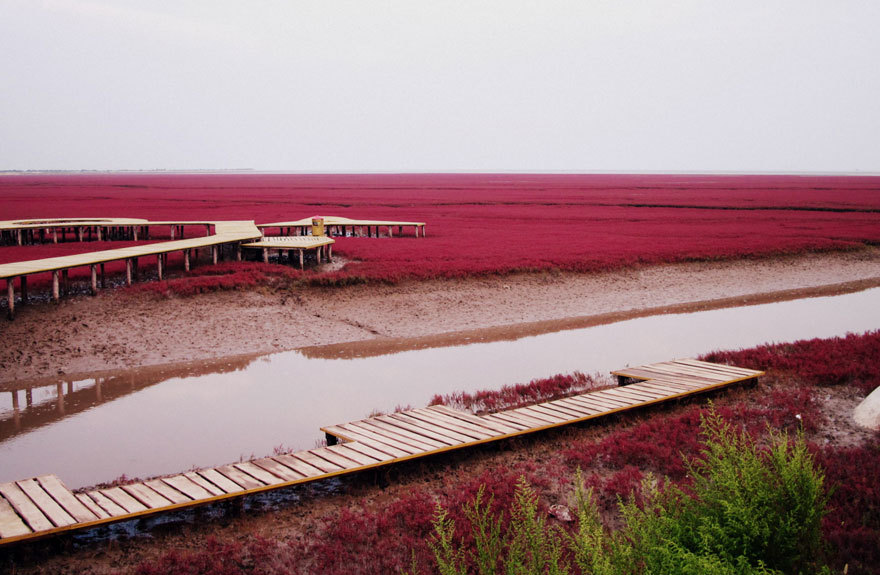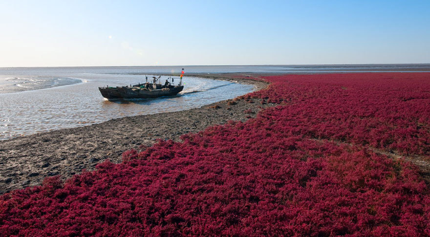 Red Beach in Panjin, China Panjin Red Beach in China is not covered in sand at all. The redness is caused by a type of sea weed,…
