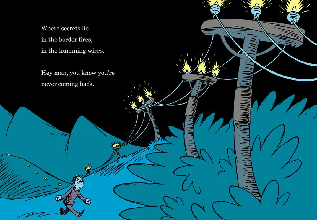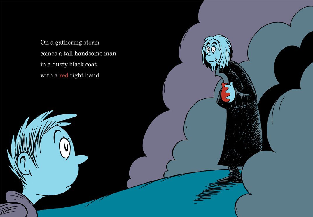 Nick Cave’s song “Red Right Hand”, wonderfully illustrated in the style of Dr. Seuss by DrFaustusAU