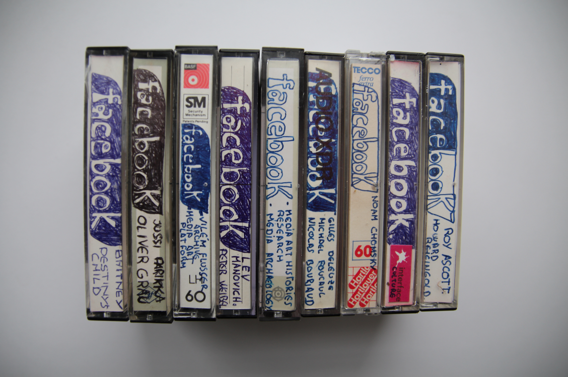 “Tapebook”is an exercise in media archaelogy. It involves the conversion of data which are extracted from social networks into audio documents. They are recorded on cassettes. “Tapebook” takes the information directly from the GUI, alters the rhizomatic (root-likes) structure of the hypertext and converts it into linear sequence of sounds.