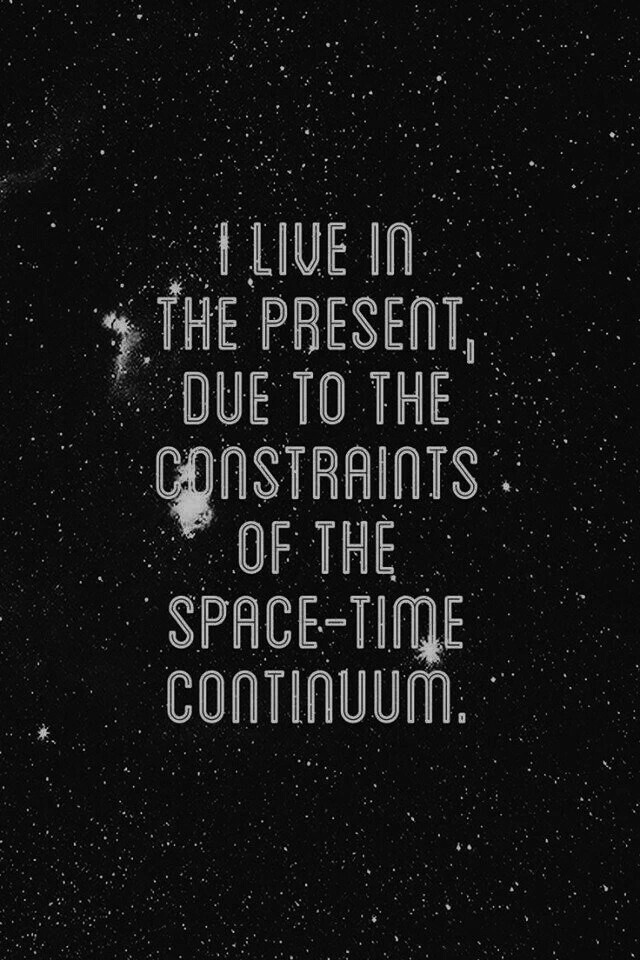 I Live in the Present, due to the Constraints of the Space-Time Continuum. 2015-07-28 chaosophia218: I Live in the Present, due to the Constraints of the Space-Time Continuum.