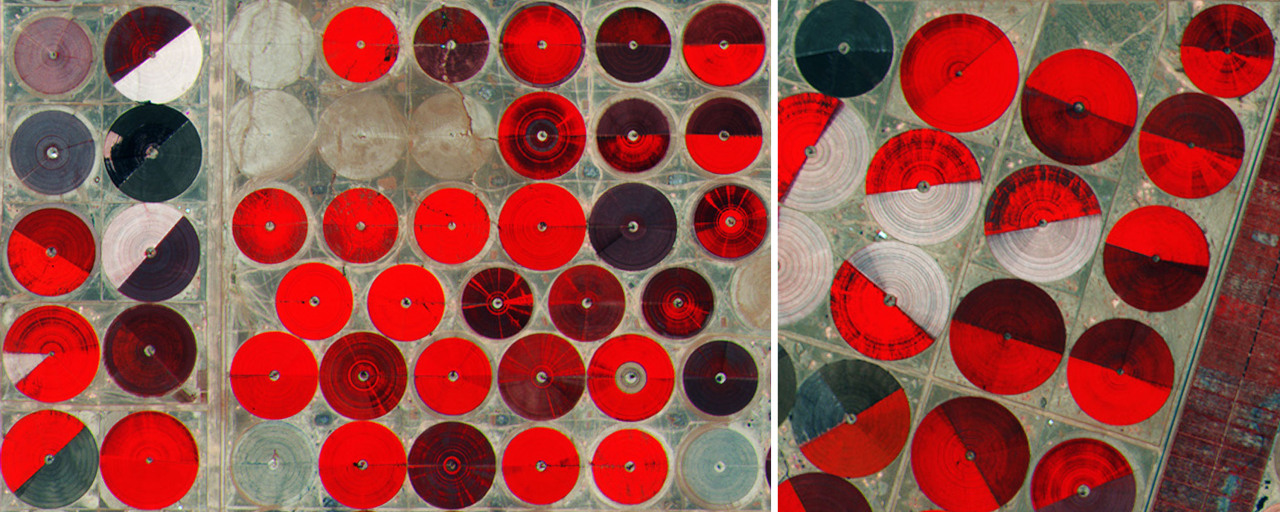 Agriculture in Saudi Arabia: false-colour images from the Sentinel–2A satellite, via European Space Agency on Flickr (Croppy…