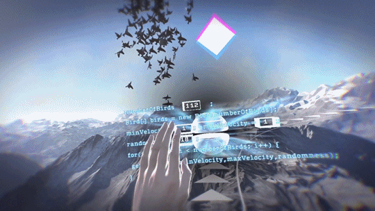 Virtual Reality game by Stefan Wagner lets you edit the coding properties of the world you explore with your hands, and can be experienced as a walk with the aid of a treadmill: