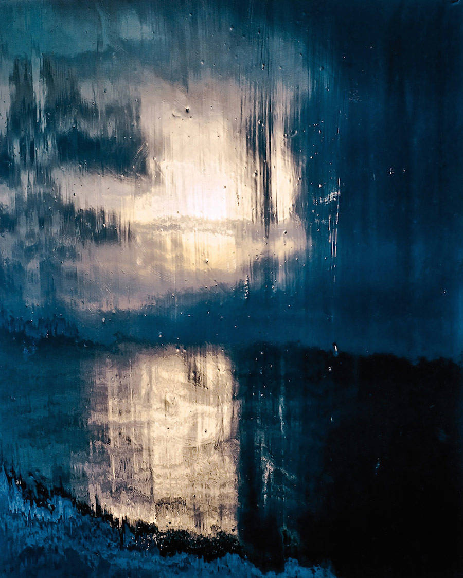 Jorma Puranen’s series, Icy Prospects, was inspired by the ways the great explorers as well as today’s tourists to the North Pole are fascinated by the arctic landscape. Puranen painted a board with black, high-gloss acrylic and then took long exposures of the icy landscapes mirrored in this wooden surface. The results are extremely painterly, highly aesthetic, fragmented impressions of nature in which the ground, the brushstroke, and the reflection are inseparably superimposed. In this way, the photographer creates a relationship between the philosophical concept of the “sublime terror” of the forces of nature and his own experience of life in these regions, typifying the north as a projection surface for fantasies and the imagination..