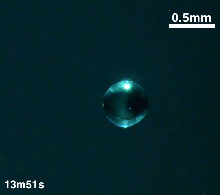 Eventually, the ethanol finishes evaporating and the oil drops collect in a ring around the outside of the drop (lower left). Slowly, the water inside the drop evaporates. Eventually, a tiny microdroplet of water is left to dissolve in the anise oil (lower right). (Image and research credit: H. Tan et al., source; via Inkfish)