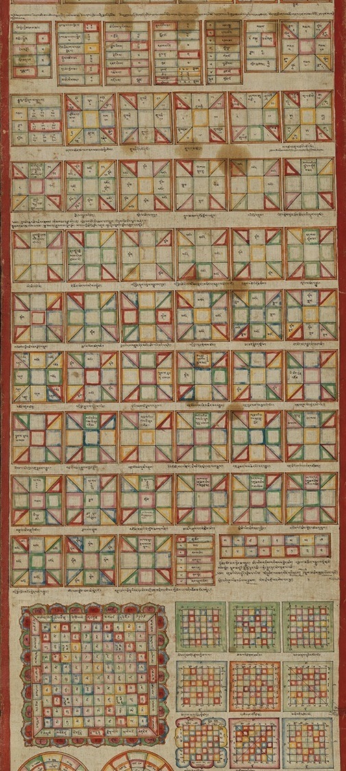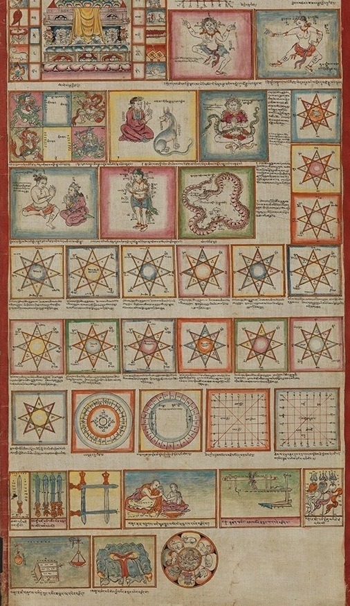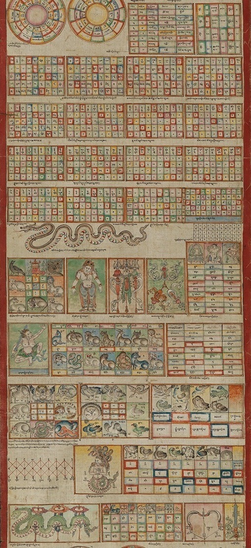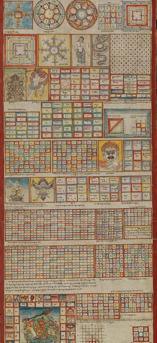 Astrological Scroll, Charts and Illustrations from the Svarodaya Tantra. Tibet. 1700s.
