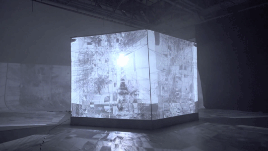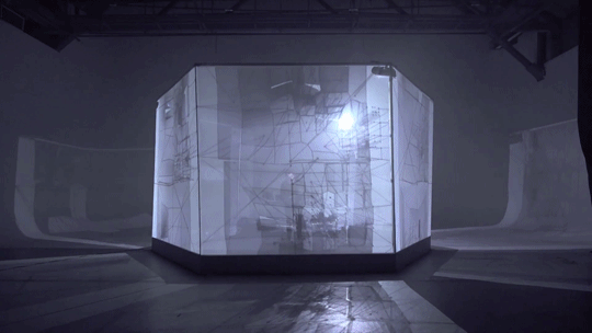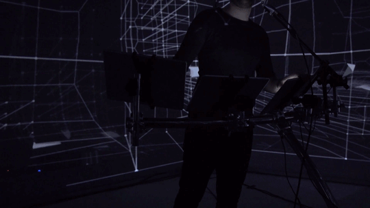 Artist @ravenkwok continues his collaboration with musician Karma Fields by taking his coding visuals into a physical space: