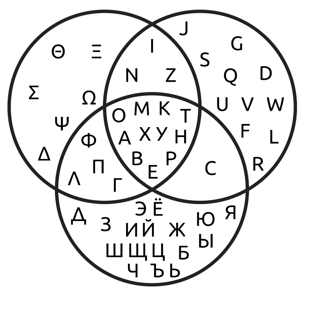 2017-03-30 writing, alphabets, latin, greek, cyrillic, venn diagram, shared characters