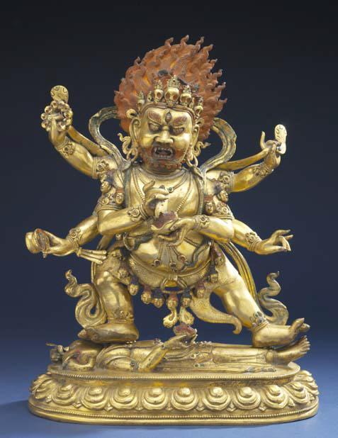 Figure of Mahakala Geography: Tibet Date: 17th century AD Medium: Cast copper alloy (bronze?) with gilding, pigment and inlaid…