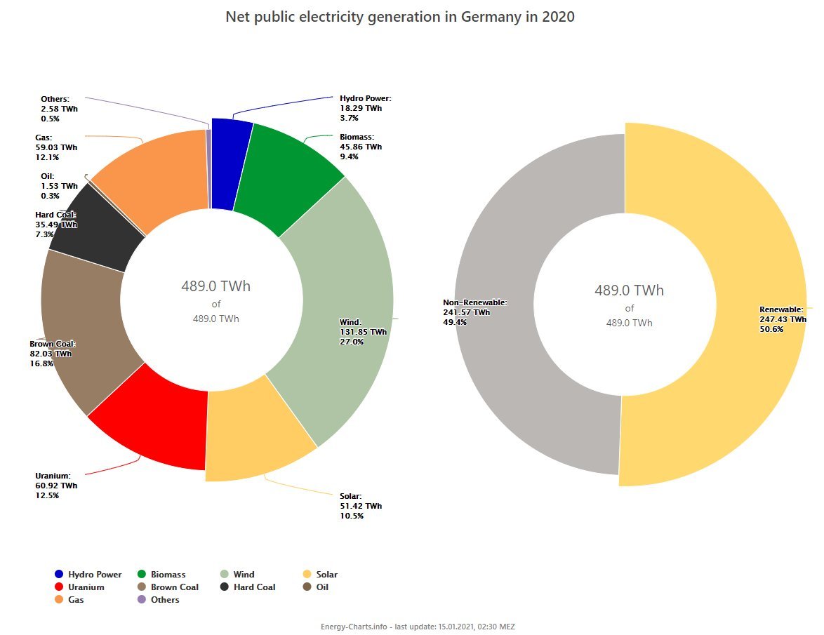 Net public electricity generation in Germany 2005 & 2020 2021-01-15 energy, renewable energy, Germany, DE, transition, climate, 2005, 2020 Net public electricity generation in Germany 2005 & 2020