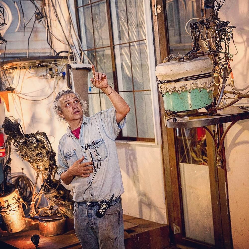 Artist Chico MacMurtrie of the #RoboticChurch discussing the history of the site specific installation in Red Hook, Brooklyn. Photo by @todseelie. by atlasobscura (via https://instagram.com/p/8vwBPOKfbC/)