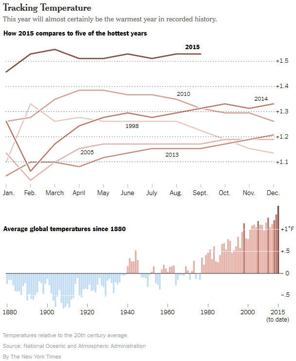 “ The bottom line is that the world is warming,” said Jessica Blunden, a climate scientist with NOAA, in Asheville, N.C. Source: NYTimes