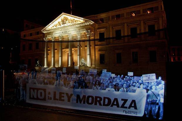 Late last year the Spanish government passed a law that set extreme fines for protesters convening outside of government buildings. In response to the controversial Citizen Safety Law, which will take effect on July 1, Spanish activists have staged the world’s first ever virtual political demonstration. After months of massive flesh-and-blood protests against the so-called ‘gag law’, thousands of holograms last night marched in front of the Spanish parliament in Madrid. Organised by the group Holograms for Freedom, ghost-like figures holding placards took aim at the imminent draconian measures, arguing that holographic people are now afforded greater freedoms than their real-life counterparts.