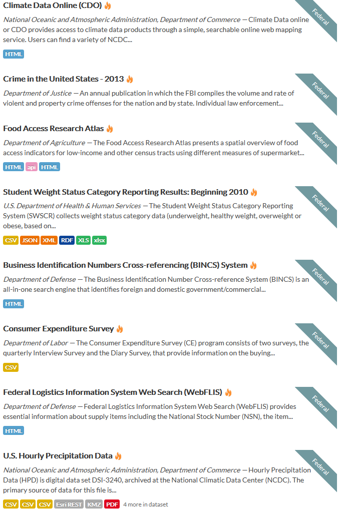 Huge source of government data now open to the public at Data.gov. Climate, weather, precipitation, food access, crime, even the weight of students (e.g., health indicators). These new data bases are one of Obama’s pet projects. There are nearly 200,000 sets!