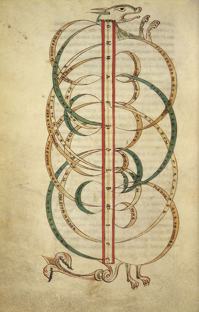 Zoomorphic illustration from the 12th-century manuscript Boethius, De musica, f.43v.