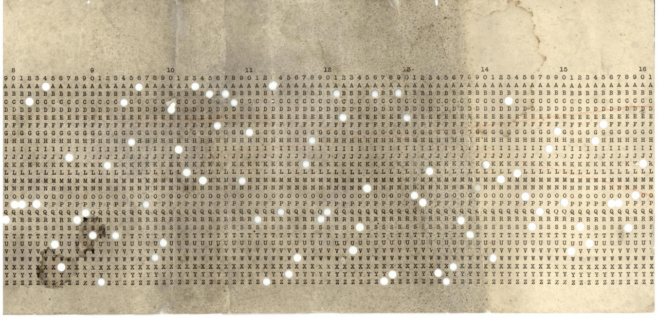 A Banbury sheet, c. early 1940s. Used to break German naval Enigma messages in a process invented by Alan Turing, called Banburismus. The only surviving examples of these sheets were found inside the walls of Hut 6 at Bletchley Park in 2013.