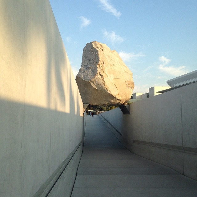 Obligatory picture of Michael Heizer’s Levitated Mass, 2012 at @lacma The granite stone is 340 tons and stands above a 456 foot slot below. According to the press materials, Heiser conceived of the work in 1969, but didn’t find the perfect rock until decades later. by frieze_magazine (via http://instagram.com/p/xp29z2SgLf/)