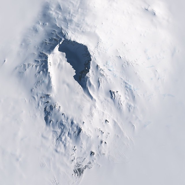 Mount Sidley is Antarctica’s highest volcano, and one of the most inaccessible large mountains in the world. Only a few scientists and adventure tourists have ever climbed it. Its huge crater, 5 km (3 mi) across, was created by a series of violent eruptions almost 5 million years ago. Many other details are still unknown: for example, its height is about 4,250 m (13,950 ft), but it has never been precisely measured with modern, GPS-based surveying techniques. A pattern of deep earthquakes has led geologists to believe that a new volcano may be building nearby to the south, although it might never reach through the ice sheet as Mount Sidley has. The ice is up to 1.5 km (1 mi) thick in this area, and covers what would be a very rugged landscape if it were exposed. Landsat 8 collected this image on the 21st. by mapbox (via http://instagram.com/p/yLi8yuTeae/)