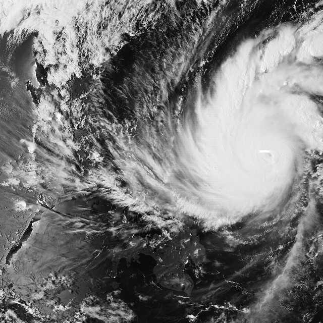 Typhoon Hagupit, seen here by moonlight on the early morning of the 5th, is approaching the Philippines. It’s about 550 km (350 mi) across, nearing the central Philippines to the west, where it’s forecast to make landfall on Saturday. Many of the areas in its path are still recovering from the record-breaking Supertyphoon Haiyan, more than a year ago.