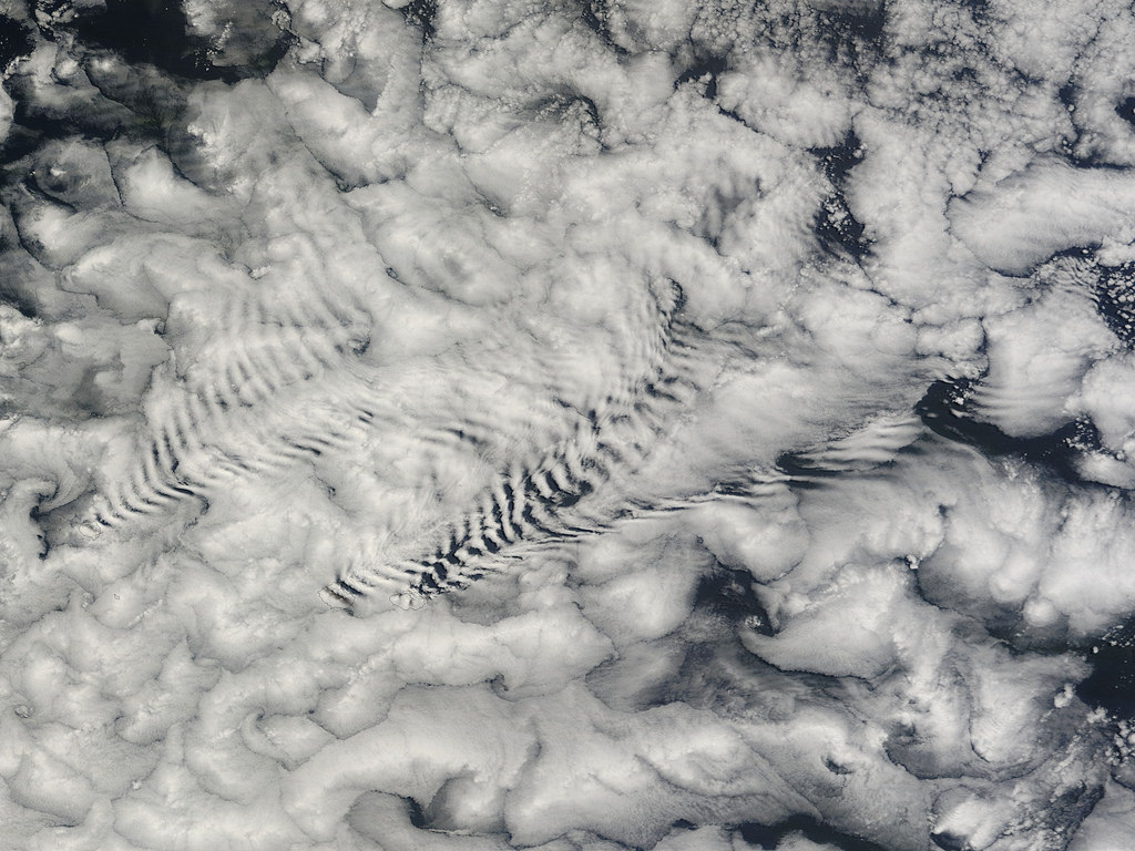 Ship-wave-shaped wave clouds induced by the Crozet Islands, south Indian Ocean by NASA Goddard Photo and Video (via http://flic.kr/p/qkV6Ge )