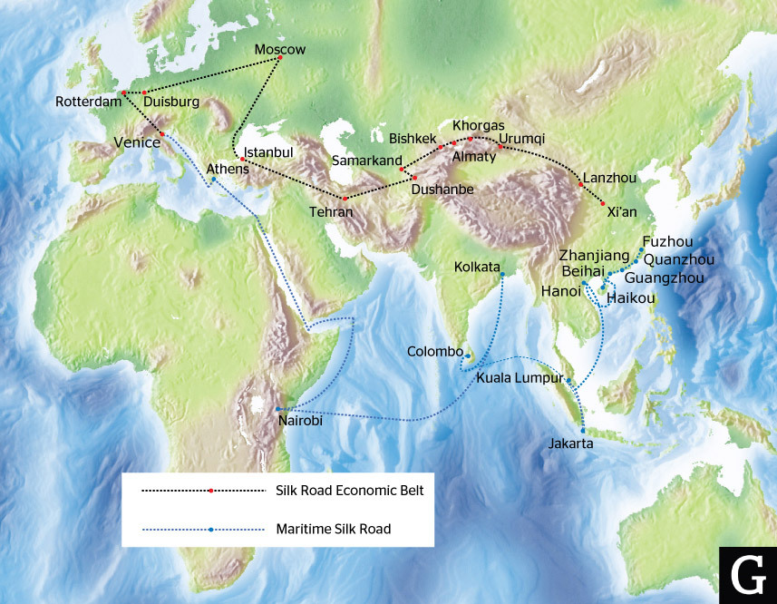 “President Xi Jinping and the Chinese government have committed over $16 billion towards building the required infrastructure to recreate the centuries-old trade route stretching from China to the Mediterranean. The new ‘Silk Road Economic Belt’, a high-speed train line running through Eurasia, Iran and Turkey before finishing in Western Europe, is one of two large-scale, global trading projects China is aiming to create, as well as the ‘Maritime Silk Road’, which will run via Southeast Asia, India, and Kenya, before finishing in the Mediterranean.”
