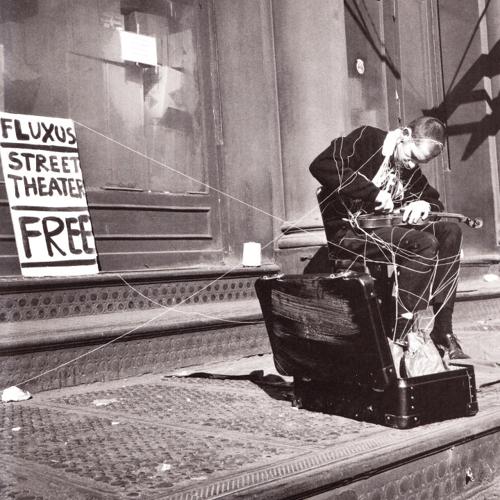 Performed by Ben Vautier and Alison Knowles (not pictured) during “Fluxus Street Theatre” as part of Fluxus Festival at Fauxhall, New York City