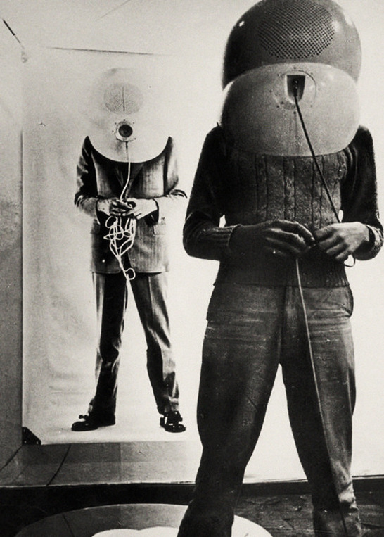 TV Helmet. (The Portable Living Room) by Walter Pichler, 1967.
