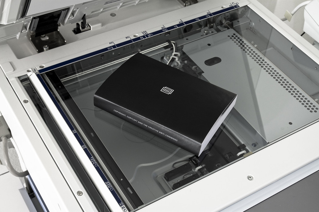 The pages of C.O.P.Y remain empty for the human eye. After xeroxing or scanning, thanks to the ‘void pantograph’ method, the book reveals the essay “Copyright, Copyleft and the Creative Anti-Commons” by Anna Nimus. As in open source development, the text’s quality (legibility) gets better with every copy.