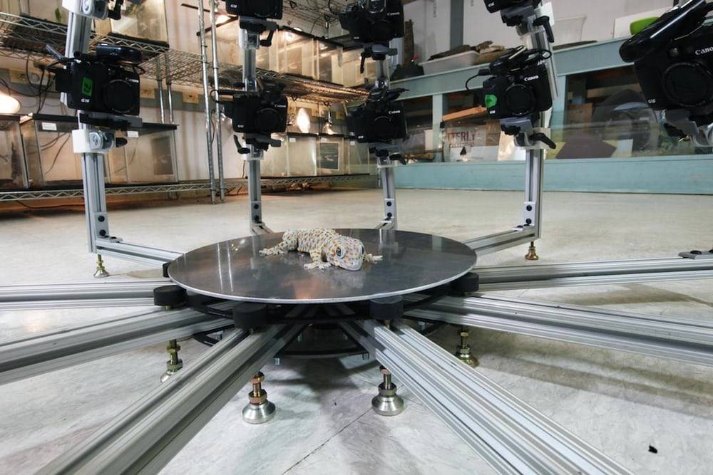 The Beastcam is made up of 10 fixed arms with three Canon G16 cameras attached to each one, and a platform in the middle for the subject to sit on, or where that’s not possible, a more portable, handheld version can be passed over the animal to take the shot. All of the cameras take photos of the animal simultaneously, before off-the-shelf software stitches them together into a 3D model.