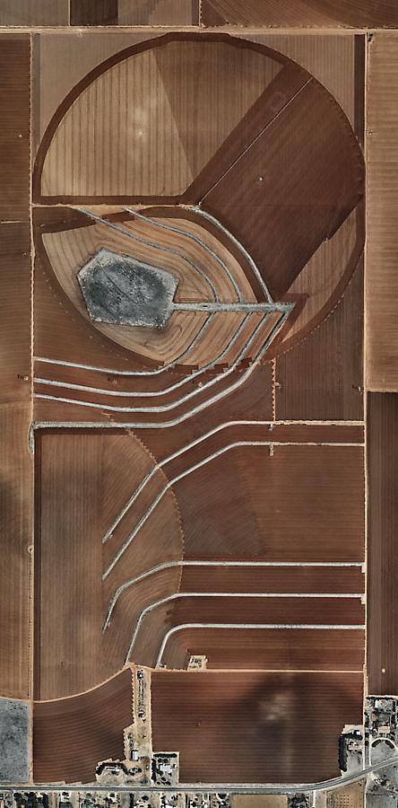 Fruit trees swirl on the hills of Huelva, Spain. The climate here is ideal for this growth with an average temperature of 17.8° C (64° F) and a relative humidity between 60% and 80%.