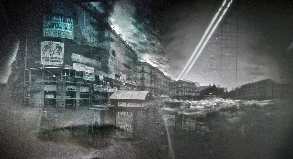 Solarigrafías en la Puerta del Sol de Madrid durante la acampada del Movimiento 15M. by Solarigrafía / Diego López Calvín (via http://flic.kr/p/BDHsTW )