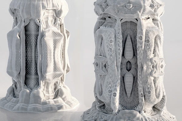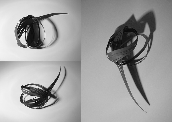 an· i· so· tro· py : the property of being directionally dependent, as opposed to isotropy, which implies identical properties in all directions. Anisotropic Formations is a proto-architectural exploration of anisotropic aesthetics and structures through vector based 3d printing. Taking inspiration from 3d printed fashion, composite sail manufacturing and experimental application of 6-axis robotics, the project takes the anisotropic approach as both an aesthetic and a fabrication logic. Anisotropic geometry is vector-based and is directionally dependent. Combinations of these vectors result in rich surface and 3d qualities of varied densities, hierarchies and multi-directional layering. There was an imperative to pursue this design research in a post-digital platform, stepping out from the Euclidean flatness of the computer screen onto the non-Euclidean platform of the physical. Plastic extrusion provided direct access to vector geometry in physical space, enriching it with material agency. Flexibility of the scaffold allowed for multiple configurations and other possibilities. The project was realized through a series of iterations that subjected the design agenda to a series of different machining workspaces and digital-to-physical workflows. From Cartesian workspace of a conventional 3d printer to spherical workspace of multi-axis collaborative robotics and from vector based workflows of 3d modeling to motion based work flows of animation. Anisotropic Formations_SCI-Arc 13FA_Testa ESTm Vertical Studio Team: Salvador Cortez / Cheng Lu / Avra Tomara / Nikita Troufanov Instructor: Peter Testa Robot Lab Coordinator: Jake Newsum Anisotropic Formations Nikita Troufanov