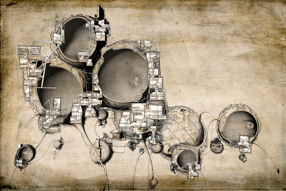 Lebbeus Woods is one of the first architects I knew by name – not Frank Lloyd Wright or Mies van der Rohe, but Lebbeus Woods – and it was Woods’s own technically baroque sketches and models, of buildings that could very well be machines (and vice versa), that gave me an early glimpse of what architecture could really be about. Woods’s work is the exclamation point at the end of a sentence proclaiming that the architectural imagination, freed from constraints of finance and buildability, should be uncompromising, always. One should imagine entirely new structures, spaces without walls, radically reconstructing the outermost possibilities of the built environment. If need be, we should re-think the very planet we stand on.
