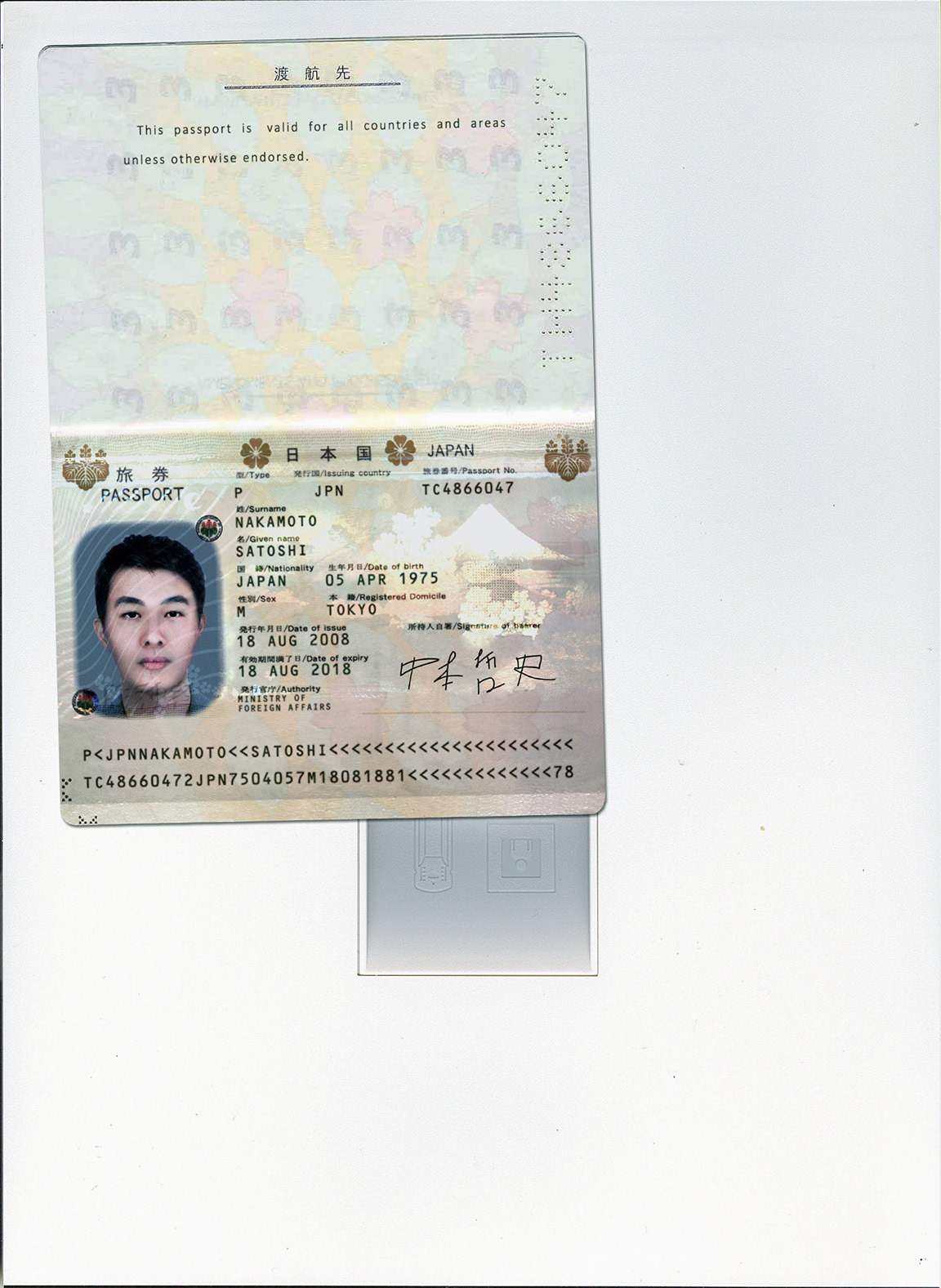 Nakamoto (The Proof). Scan de passeport, fichier numérique .jpg, 2506 x 3430 px, 2014