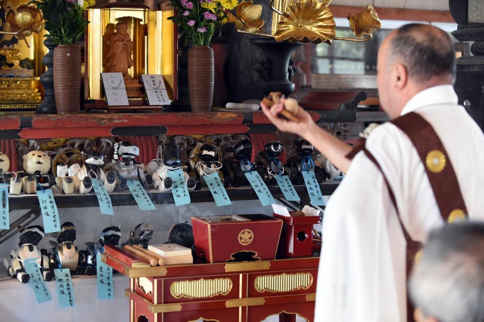 Kofuku-ji temple’s chief priest, Bungen Oi, offers a prayer during the funeral for 19 pet robot dogs on January 26. The dogs, created by Sony, were first-generation Aibo robots from June 1999 that had artificial intelligence and developed personalities and learned from their owners. Toshifumi Kitamura/AFP/Getty