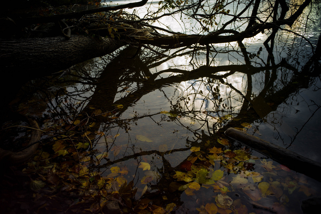 jp, norjiriko, autumn, branches, leaves, reflection, water, 野尻湖, f40, leicam9, ¹⁄₆₀sec, msopticalper