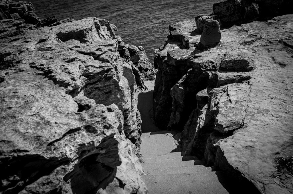 shadow, sea, texture, stairs, rocks, geology, pt, greyscale, peniche, iso160, f48, leicasummiluxm35m