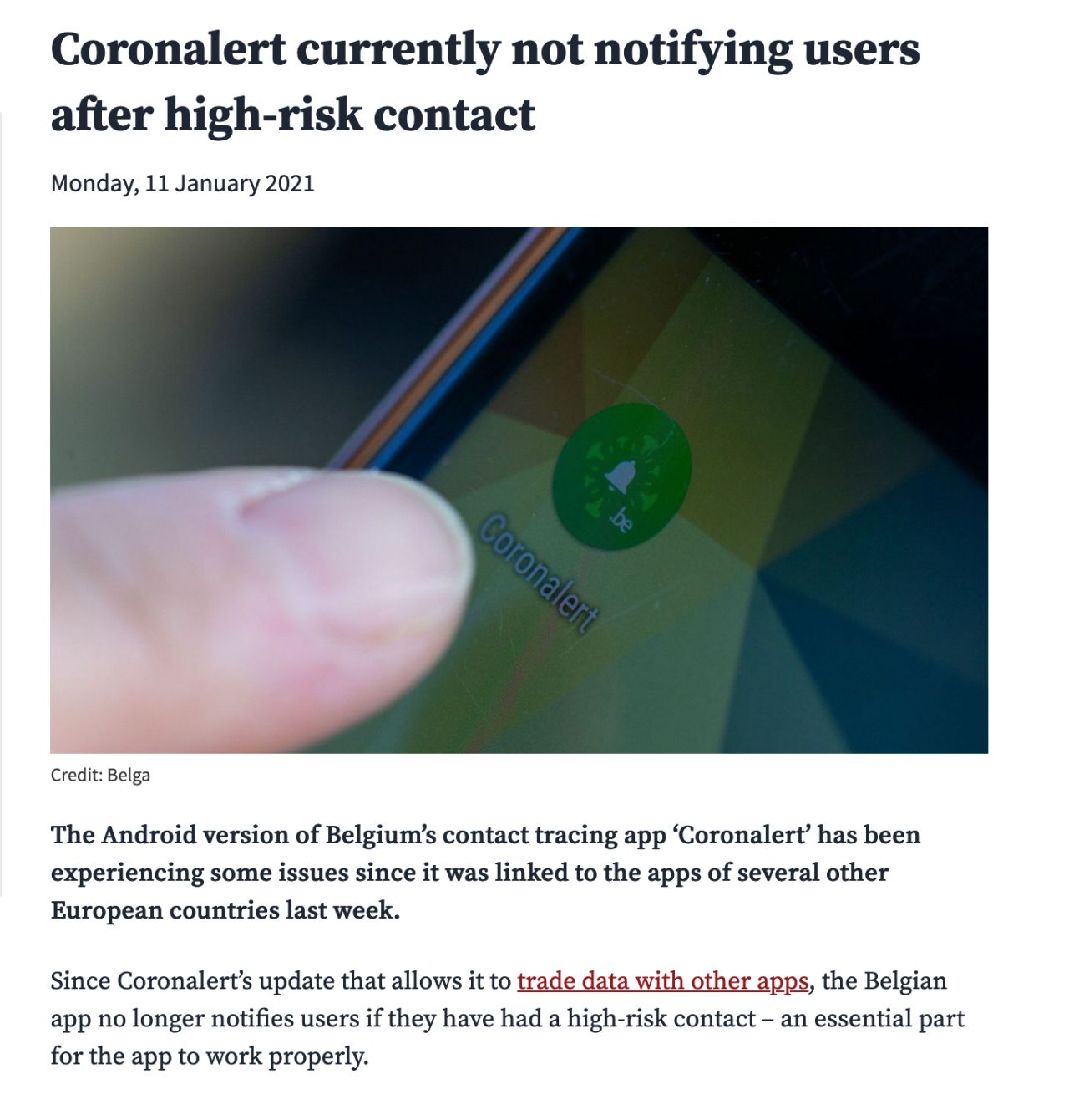 Since Coronalert’s update that allows it to trade data with other apps, the Belgian app no longer notifies users if they have…