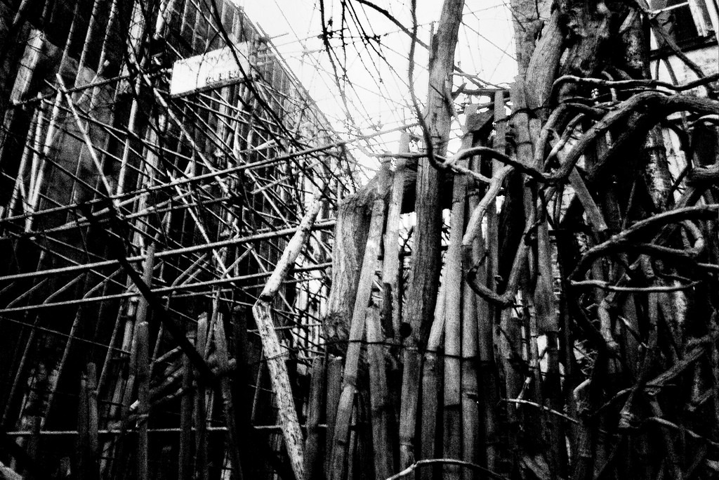 brussels, plants, film, iso200, scaffolding, bruxelles, structure, be, brussel, greyscale, foma, bru