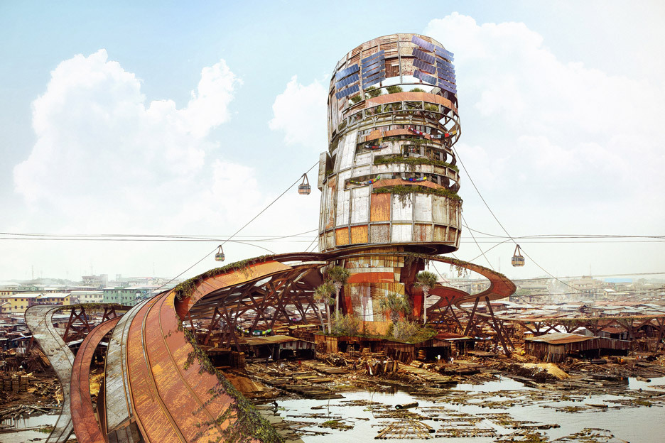 elements being gathered and arranged at central locations and distributed radially around the globe. The role of the consumer is limited to simply interacting with the end product – for the time that it remains viable. Building on participatory design methods, combined with open-source knowledge practices,