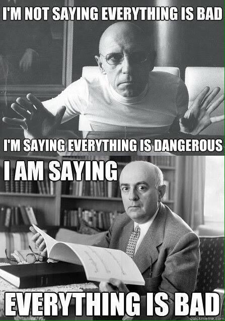 –Michel Foucault, “Practicing Criticism,” or “Is it really important to think?” May 30–31, 1981. Didier Eribon interview. In Lawrence Kritzman, Foucault, Politics, Philosophy, Culture. New York and London: Routledge, 1988. p. 155.